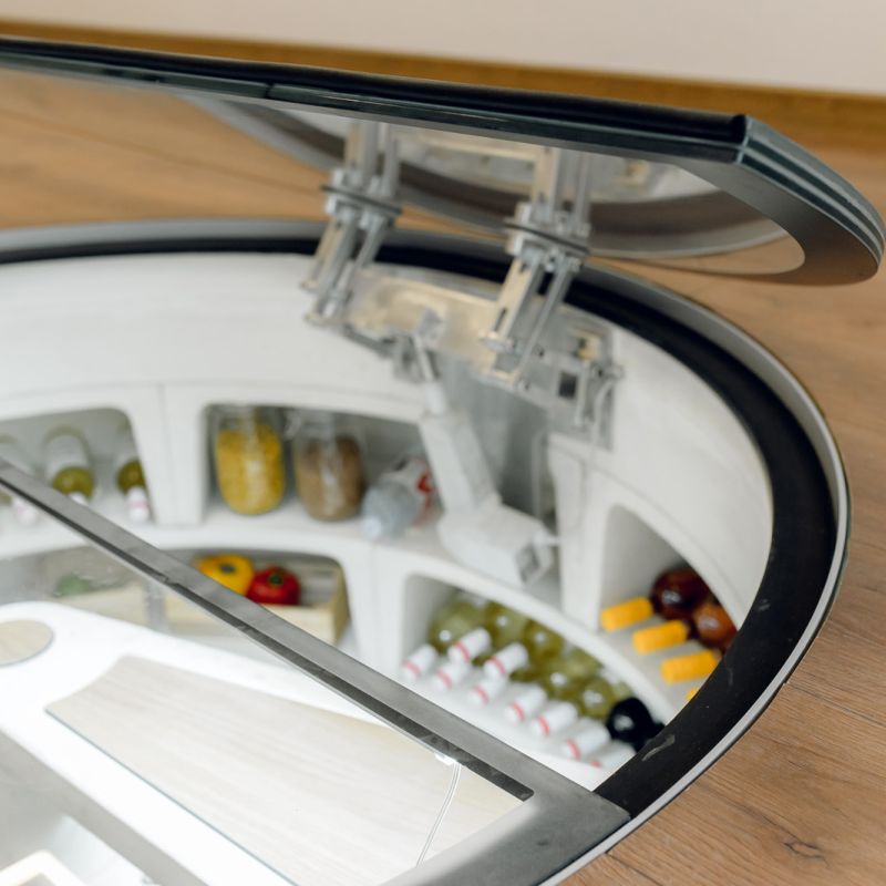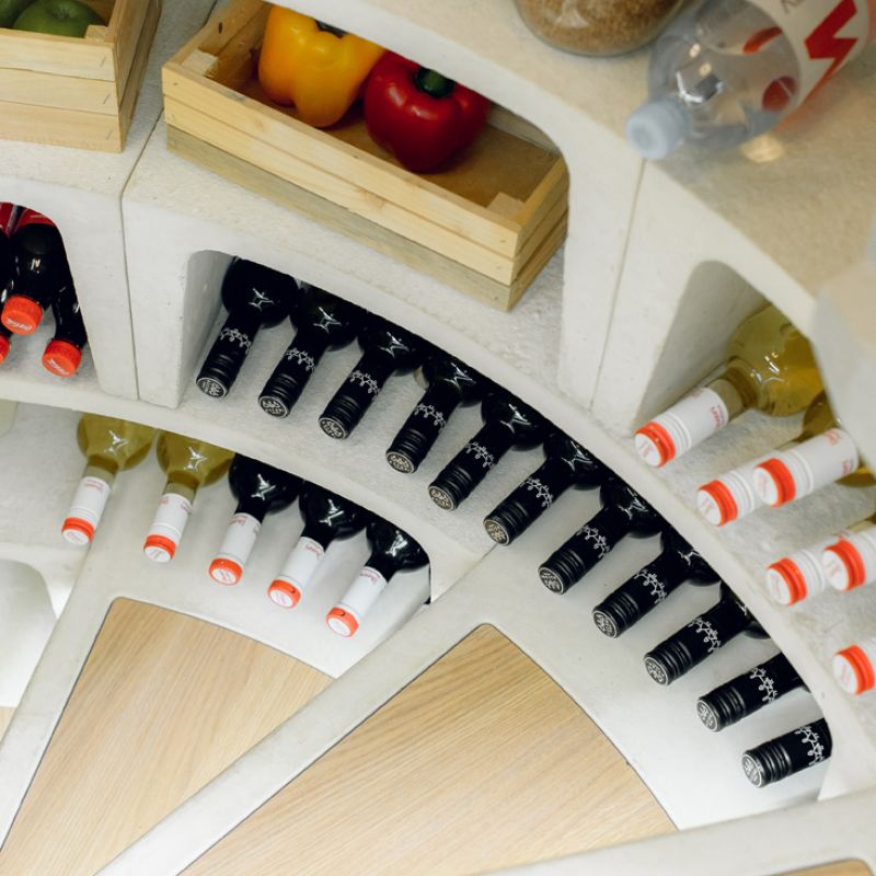Kruhový sklep je ideální volbou, pokud chcete přidat kouzlo svému interiéru. Je minimalistický, kompaktní a lze ho snadno instalovat přímo do kuchyně, obývacího pokoje nebo na krytou terasu, což eliminuje potřebu opustit místnost. Kruhový sklep pojme až 1800 lahví vína, ale to není vše! Můžete zde také skladovat ovoce, zeleninu, konzervy a mnoho dalších produktů.